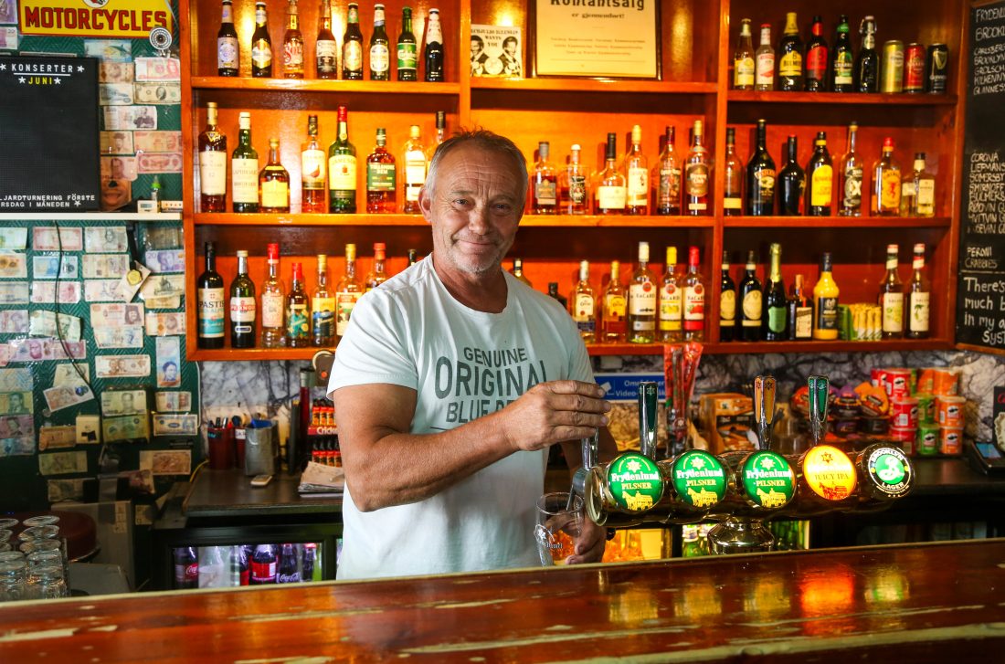 – Her serverer vi heller ikke sånne 0,4 «tullehalvlitere»; her går det i skikkelig halvlitere. Og vi har fått streng beskjed fra stamgjestene om at det er Frydenlund fatøl som gjelder, så det skal vi fortsette med, avslutter han med et smil, før han forlater puben for å forberede seg til neste asfaltprosjekt.