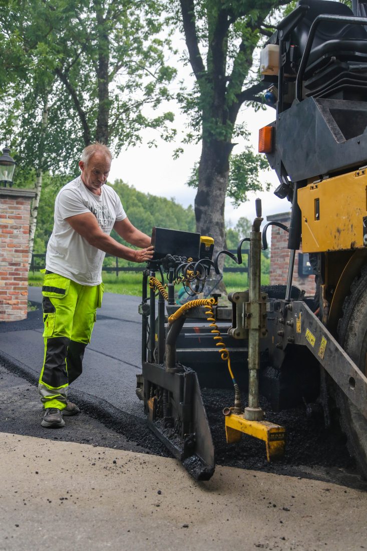 – Det er jo gøy med asfalt! Jeg liker å se resultatet, når det blir pent. Og det er gøy når det skjer noe hele tida. Er det noe jeg ikke trives med, så er det å stå med hendene i lomma og vente. Jo mer fart, jo bedre er det. Og på denne tida av året er det «bånn gass» hele tida, så jeg jeg holder på til langt på kveld hver dag. Det er godt mulig jeg har et snev av ADHD eller noen andre bokstaver, men sånt ble jo ikke utreda da jeg var ung, smiler Pål.