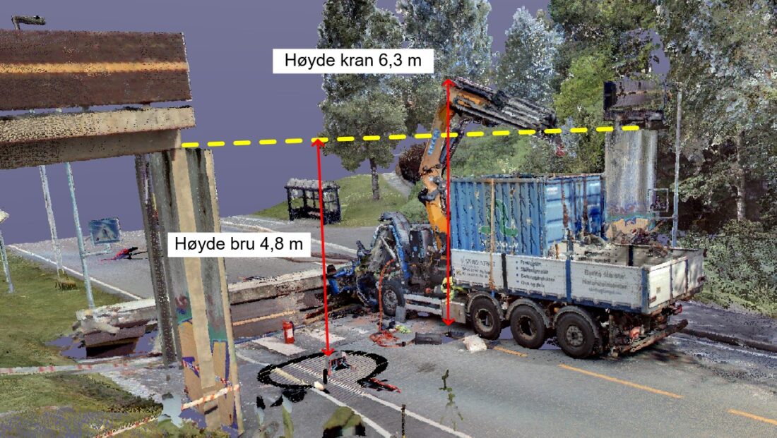 Den kommunale gangbroa var heller ikke dimensjonert for å tåle påkjørsel av et kjøretøy og kollapset etter sammenstøtet med lastebilkranen.