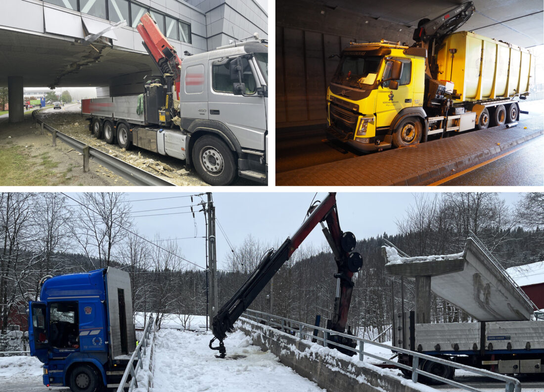 Statens havarikommisjons undersøkelse viser at det bare i 2023 var flere sammenstøt med kranbiler som kjørte med kranen hevet og traff byggverk over veien. I februar 2023 kollapset en bro over E16 på Sollihøgda etter et slik sammenstøt. Norsk Luftfartsmuseum i Bodø, som er bygd over en riksvei, fikk skader på bygningsmassen etter treff fra en kranbil med hevet kranarm i august 2023.