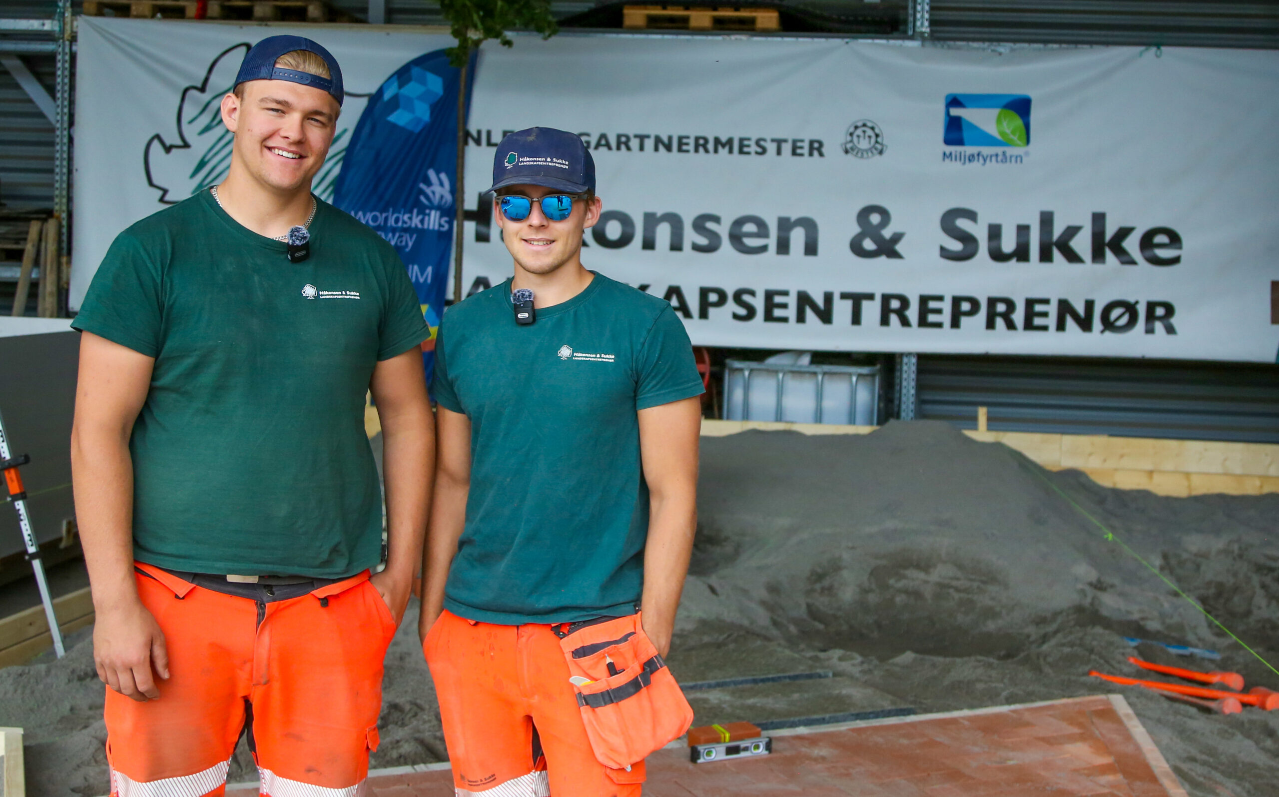 Vi møtte dem like før sommerferien, utenfor kontoret til bedriften der de begge er lærlinger; Håkonsen & Sukke Landskapsentreprenør AS, i Stokke, Vestfold. De var da i full gang med å øve på en anleggsgartneroppgave fra et tidligere Yrkes-EM.