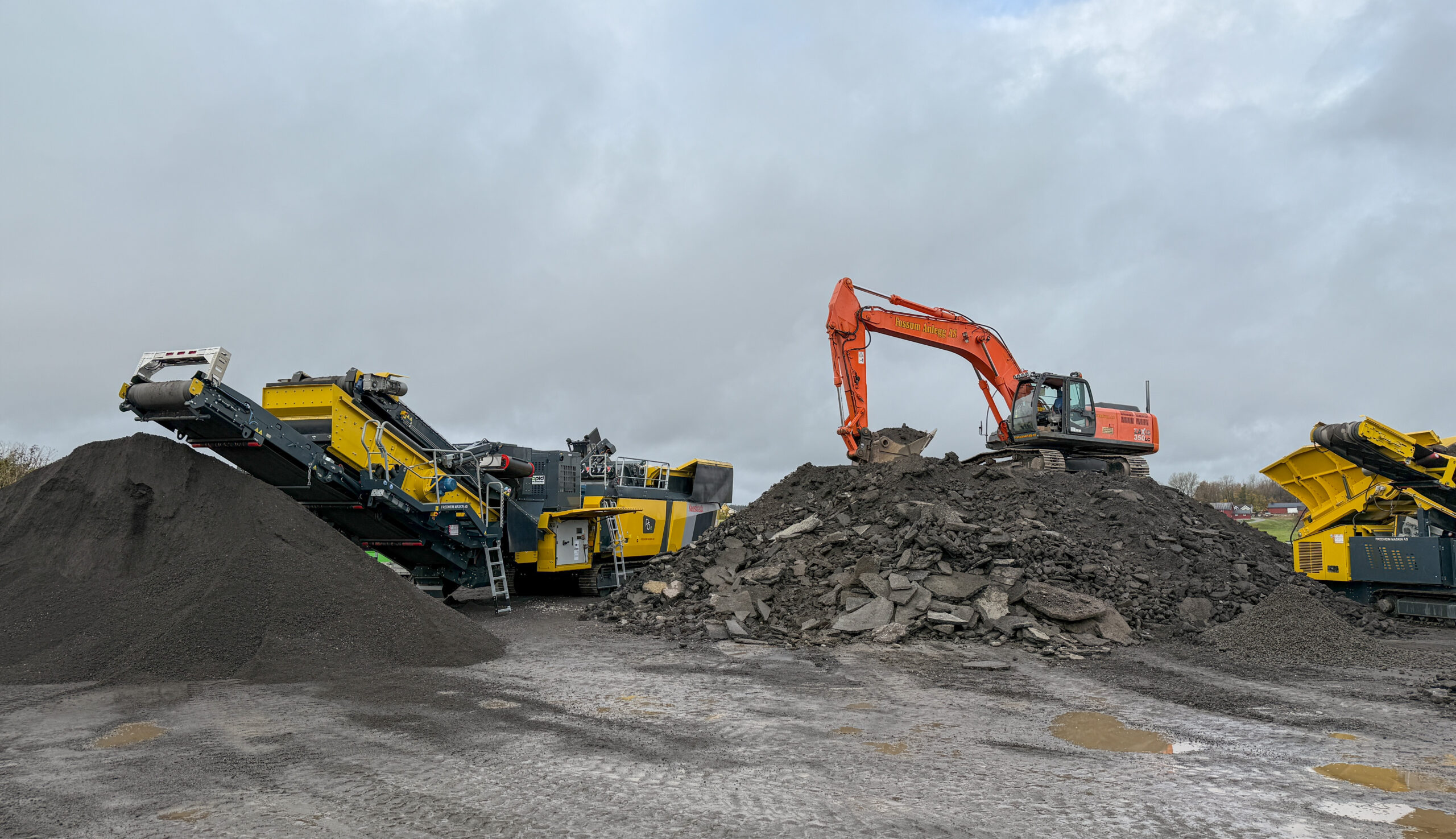 Ute på plassen står en rekke stackere, sorteringsanlegg, knuse- og sikteverk, og annet utstyr for bruk innen knusing, sikting og sortering.