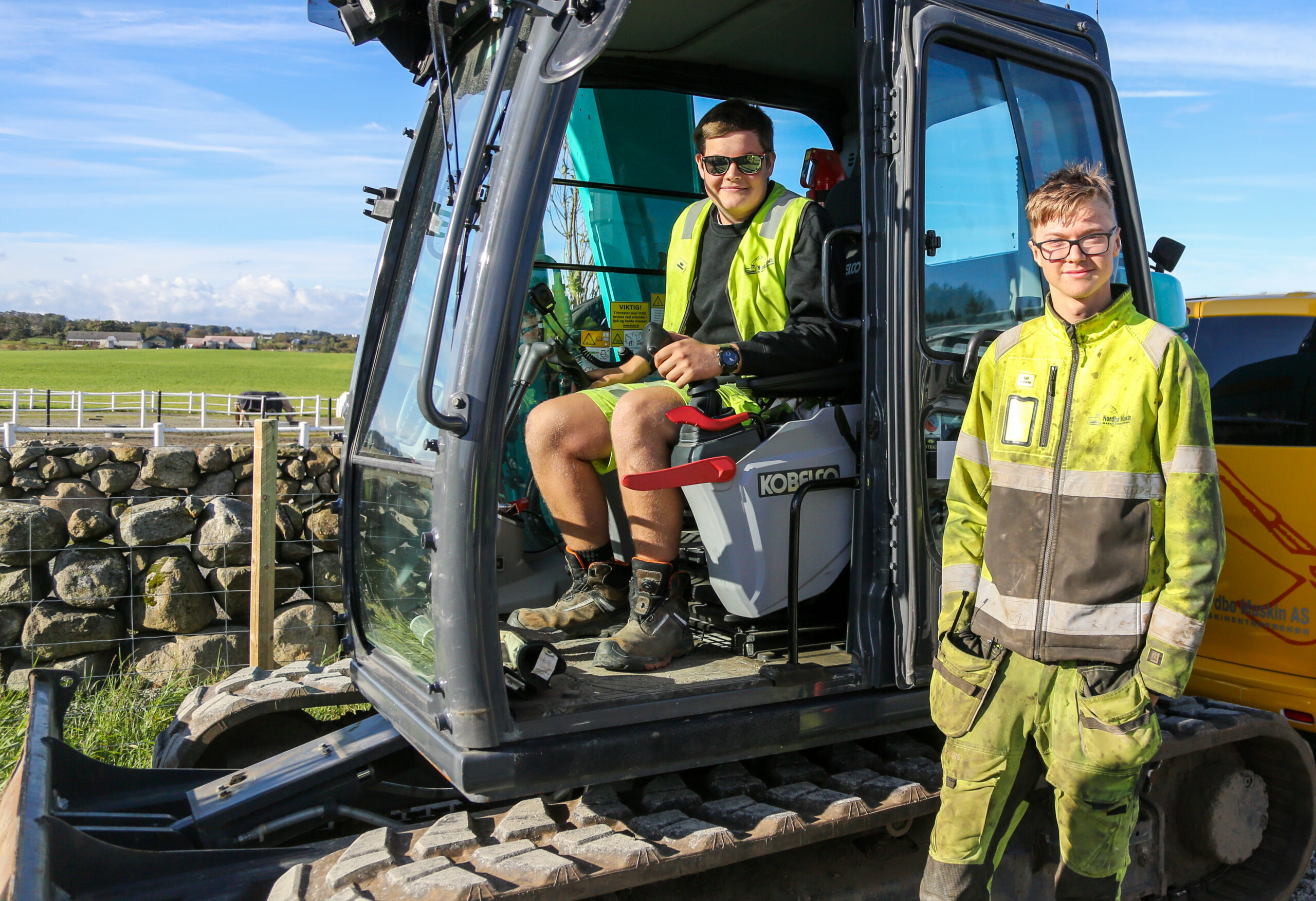 – Vi har det veldig kjekt her. Det er variert, vi får mange forskjellige arbeidsoppgaver og det er både store og små prosjekter. Jeg trives kjempegodt, sier Gjesteland, som er lærling i vei- og anleggsfaget.