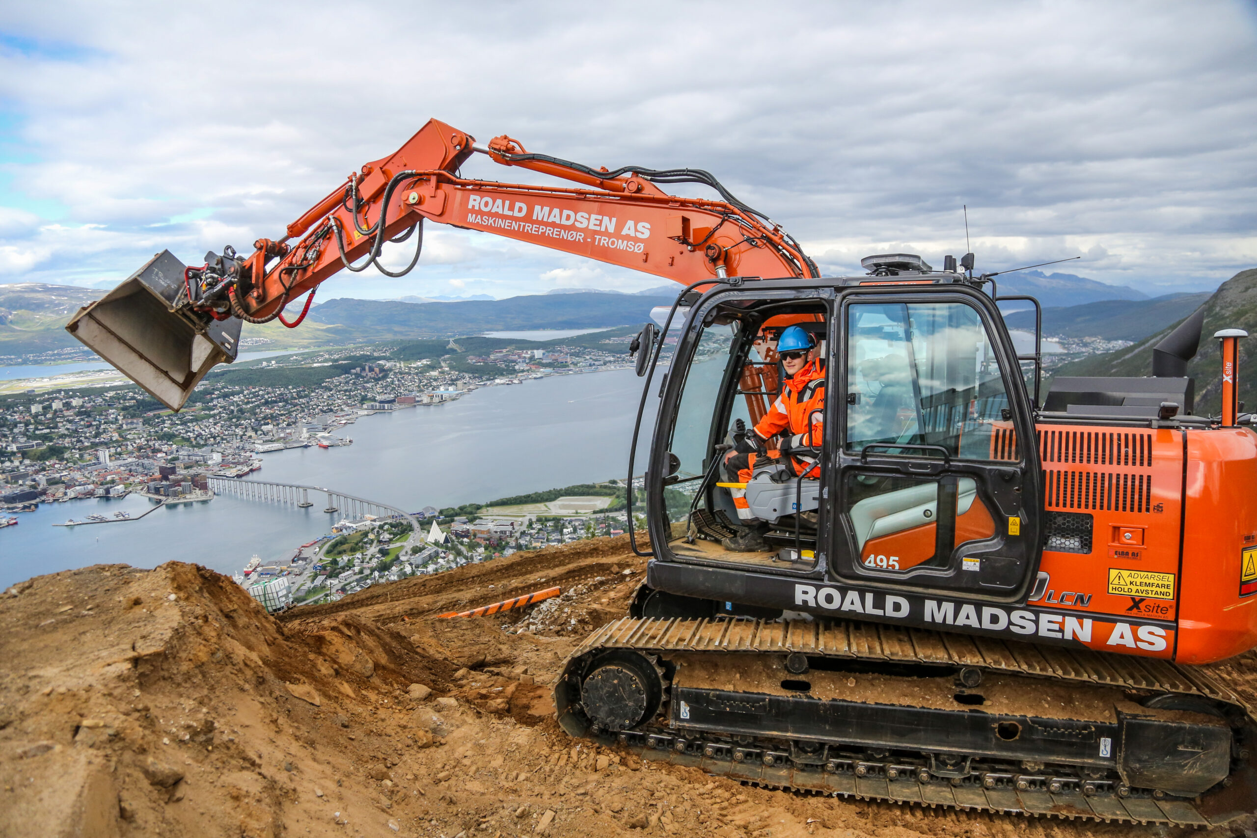 – Det er jo flott her oppe da, sier han mens han styrer spakene på en Hitachi-beltegraver, høyt over Tromsø by.