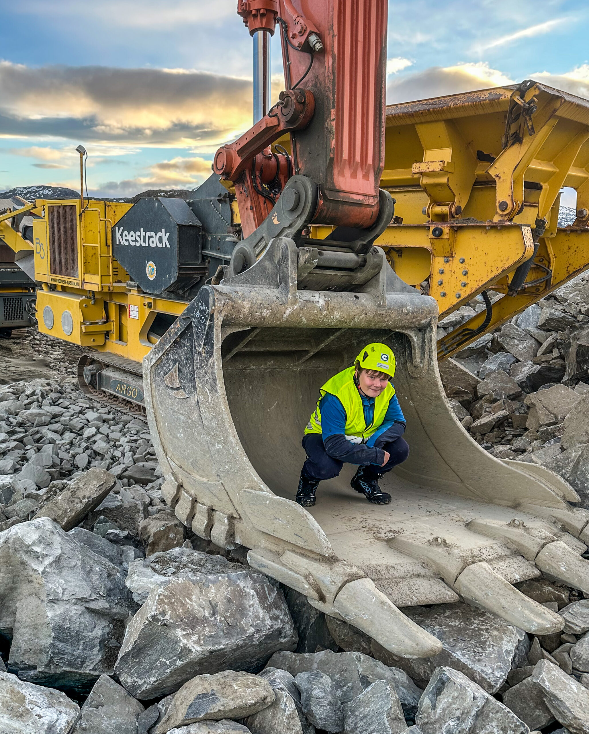 – Æ klarer nesten ikke vente med å fortelle pappa om alt det her. Æ skal spørre om pappa har kjørt en så svær gravemaskin før! Og når han svarer nei, kan jeg si at det har æ!