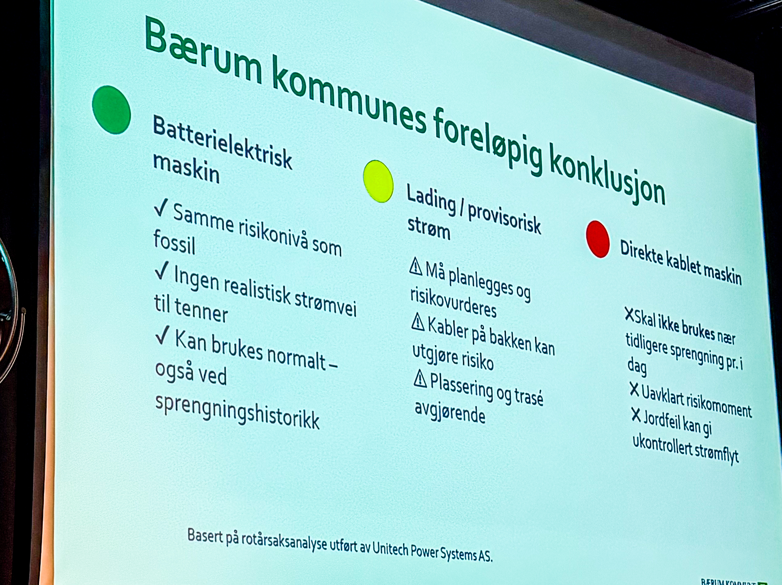 – Men vi trenger noen felles retningslinjer i bransjen; en felles forståelse av risikoen ved å elektrifisere anleggsplasser der det har vært sprengt tidligere, avsluttet han.